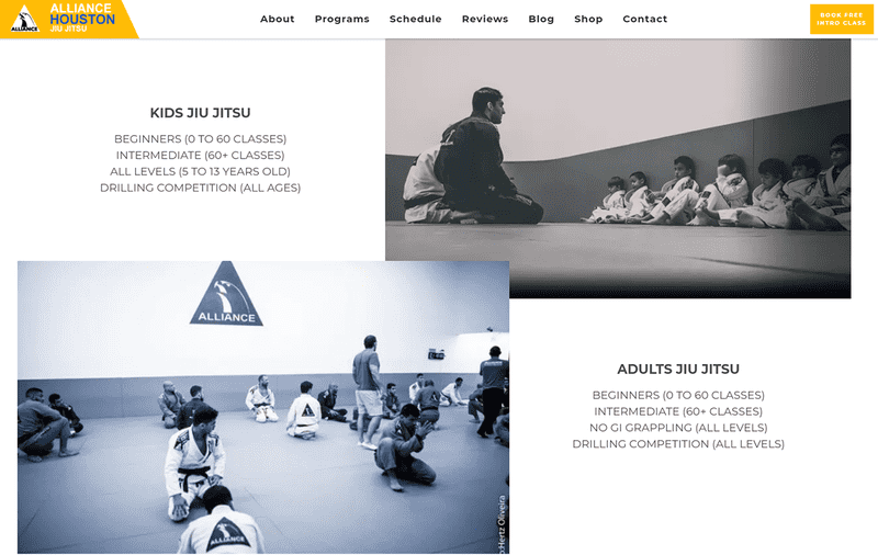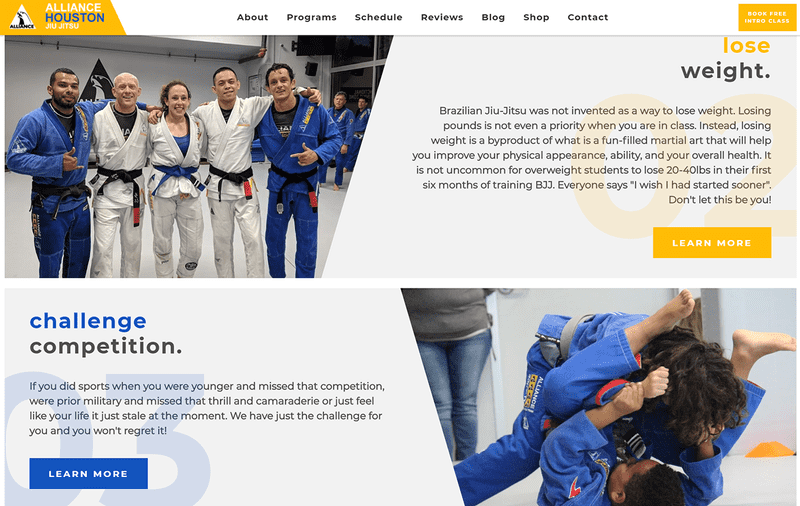 The Houston BJJ gym was looking to reinvigorate their existing website to provide clientele with a pleasant showcase of their values and offerings. Designed in Figma and developed from scratch with a custom Wordpress CMS, the site was redesigned to express the client's vision and values for sharing the jiu-jitsu experience to all.
